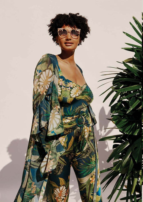 The palm print camisole was designed to go with the rest of the jungle print loungewear but can easily be paired with other separates. Made from the same, beautifully stretchy jersey knit - this camisole is comfortable and stylish. The flattering combination of wide, flat shoulder straps (so is bra friendly!) and gathered sweetheart neckline are genius.