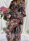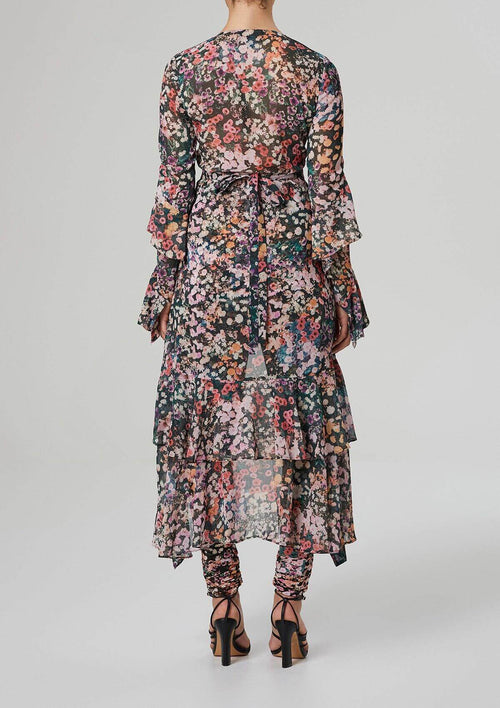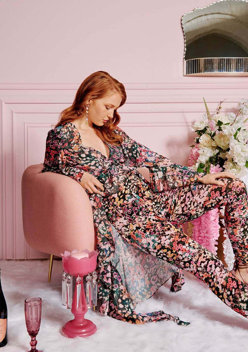 Designed to fit and flow in all of the right places, wear the ruffle cover up as an ensemble or separate piece. The functional wrap design can be worn open, wrapped or adjusted to suit your style and mood. An asymmetric hem adorned with ruffles reminds us of Stevie Nicks bohemian style. Layered, ruffled, long sleeves add to the glamour while making this piece a delight to wear for any occasion. Pair it with a camisole, slim pants and stilettos for a breezy night on the town, or with the other loungewear for the ultimate matchy-matchy look. Perfect to pack and throw over your swimwear as you pop out of the pool and lounge by the bar.