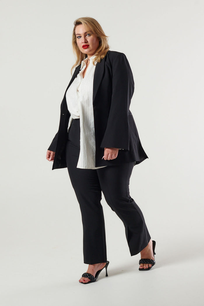 - Tailored, classic longline blazer (covers the bottom)